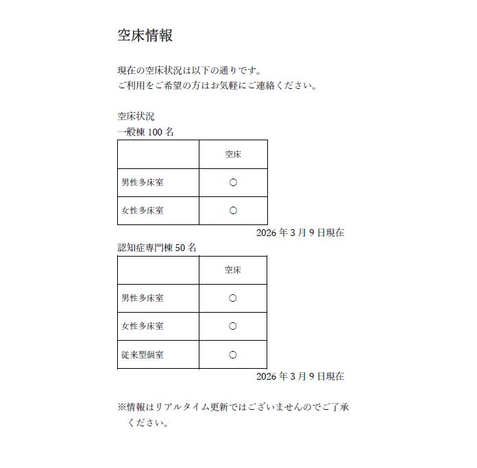 空床情報【はーとふる東山】