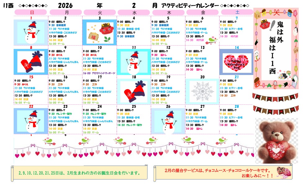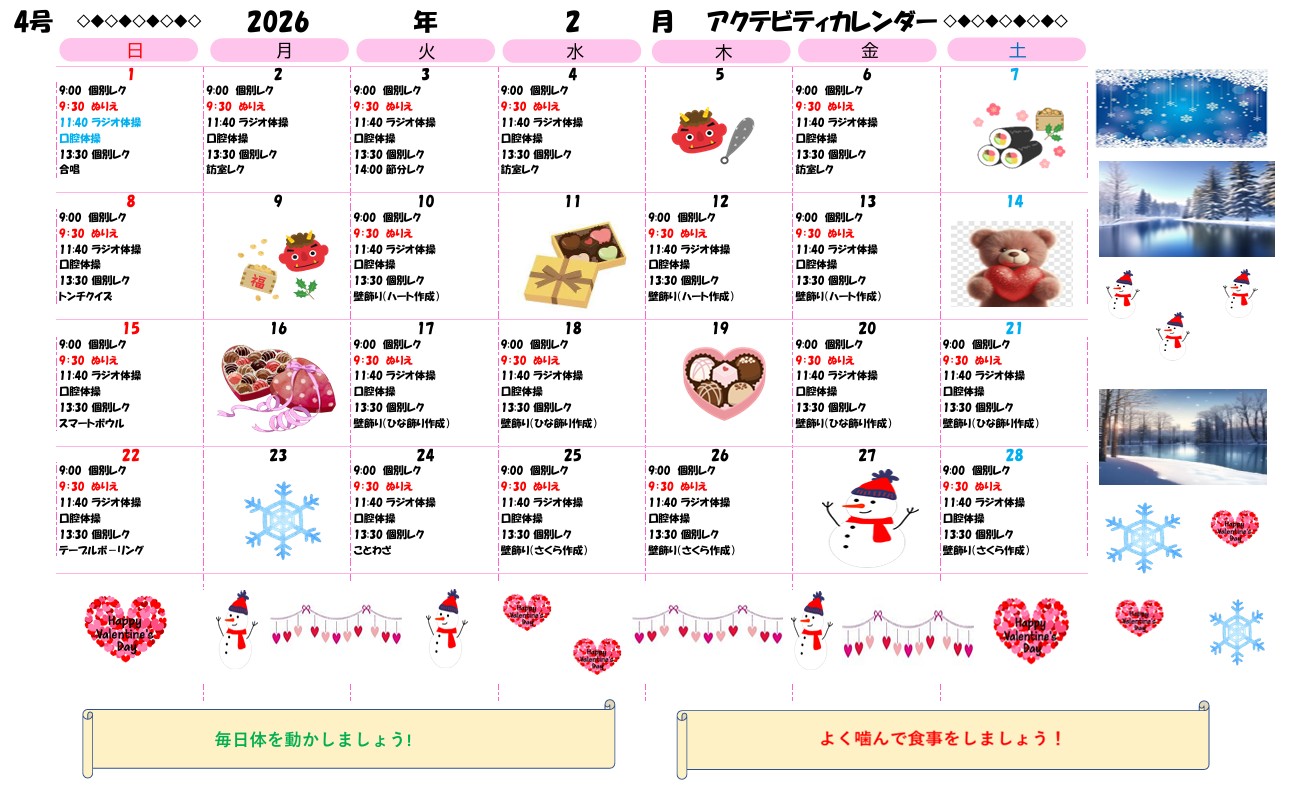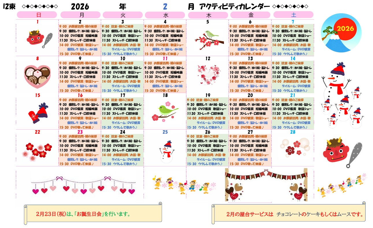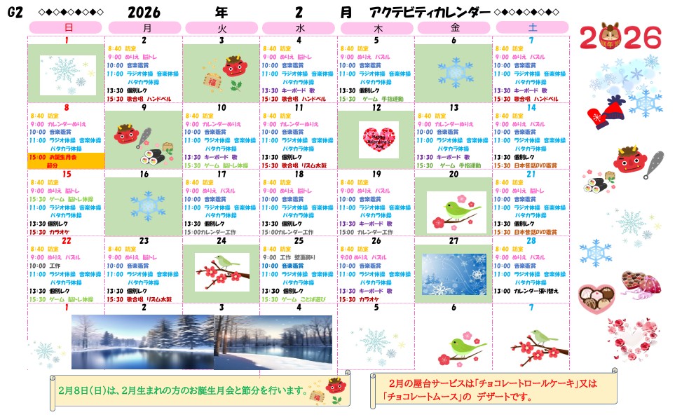 アクティビティーカレンダー掲載のお知らせ(2026年2月)【京都東山老年サナトリウム】