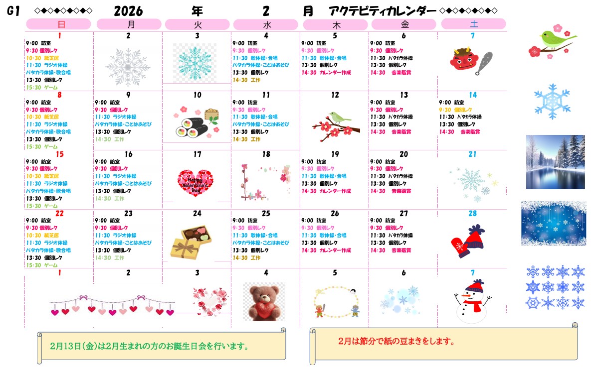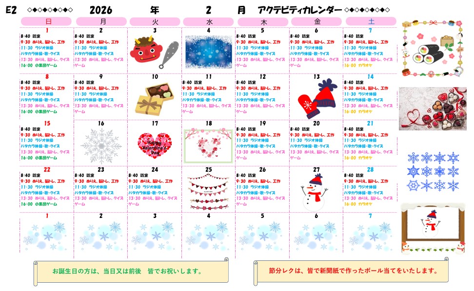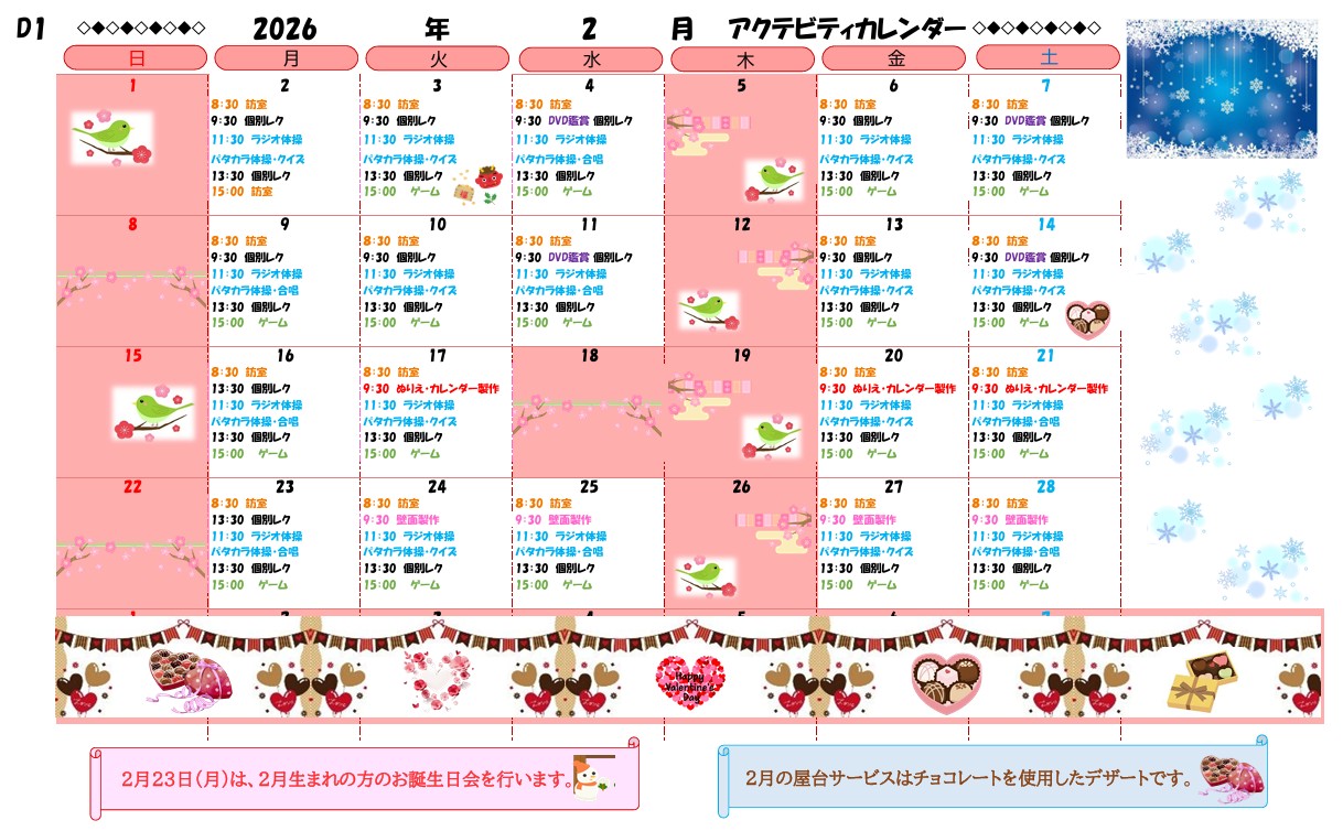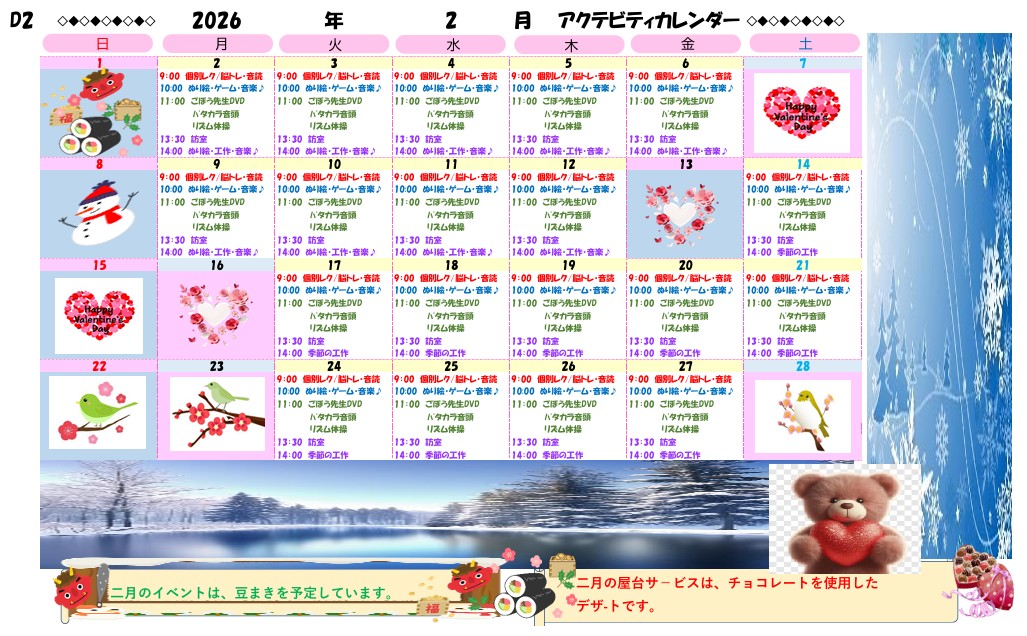 アクティビティーカレンダー掲載のお知らせ(2026年2月)【京都東山老年サナトリウム】