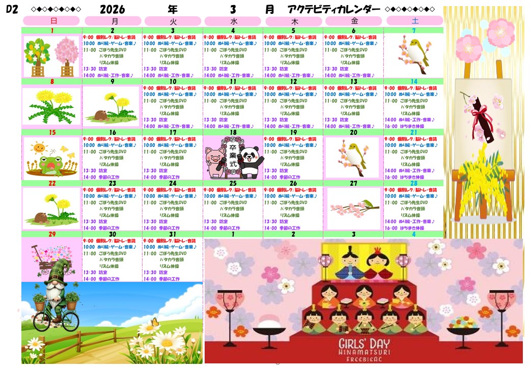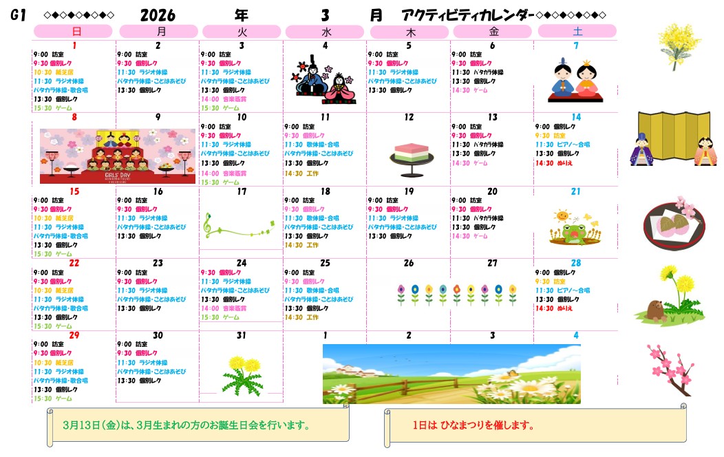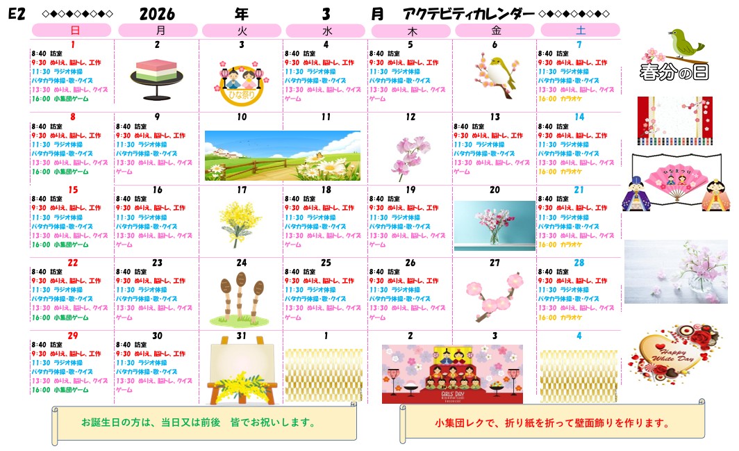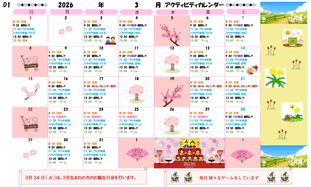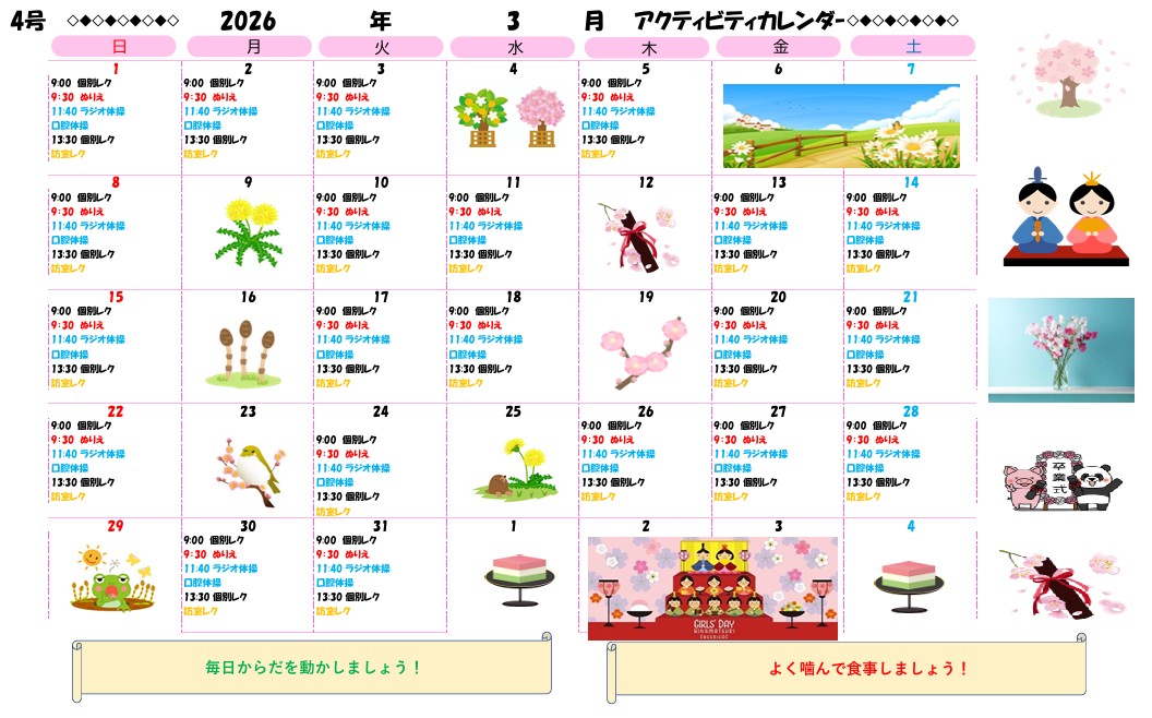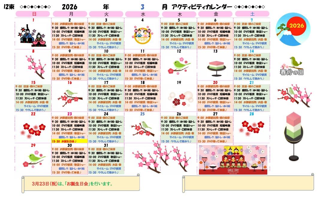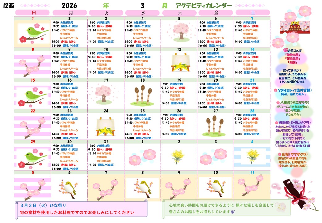 アクティビティーカレンダー掲載のお知らせ(2026年3月)【京都東山老年サナトリウム】