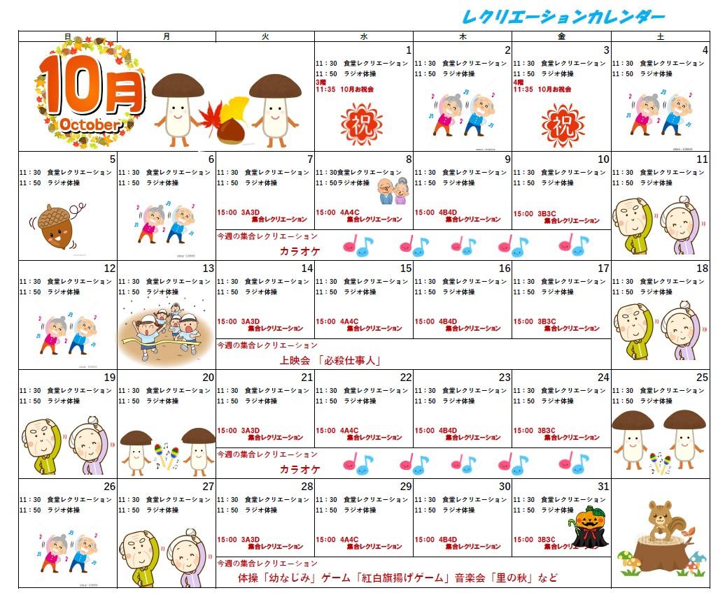 レクリエーションカレンダー掲載のお知らせ(2025年10月)【なごみの里病院介護医療院】